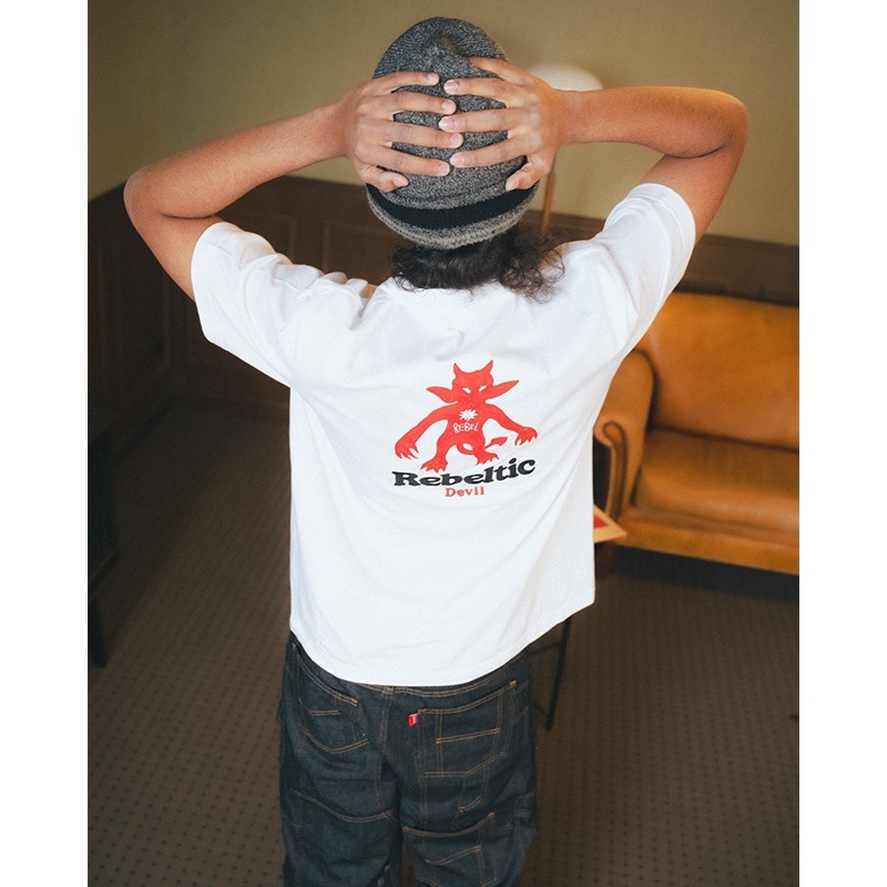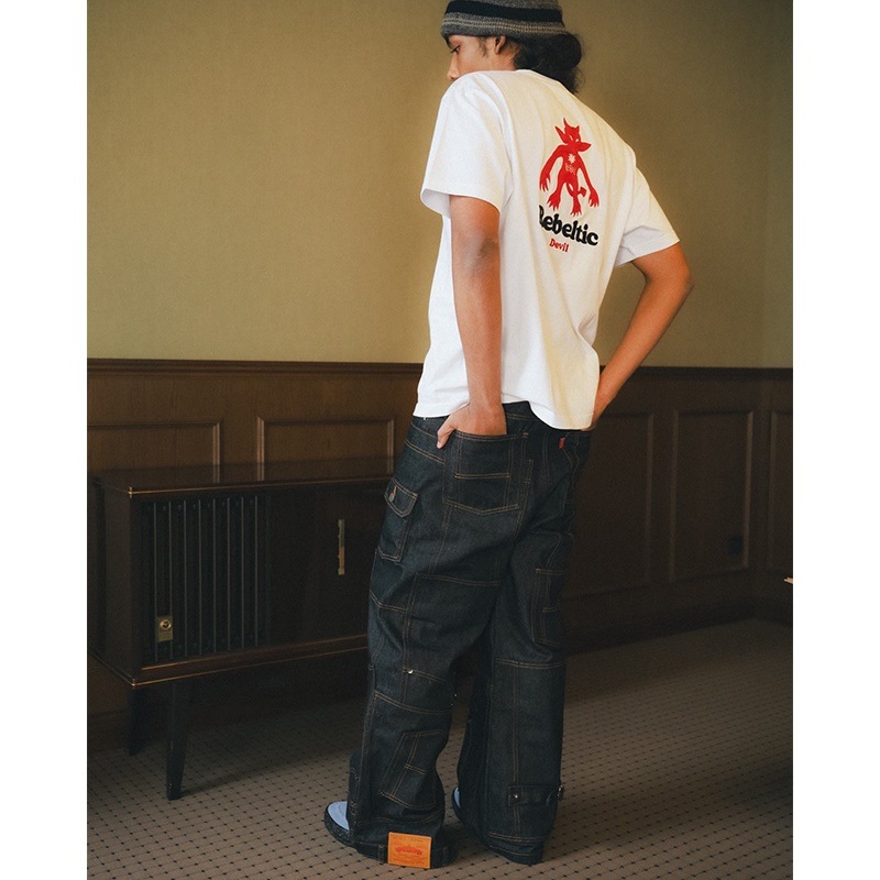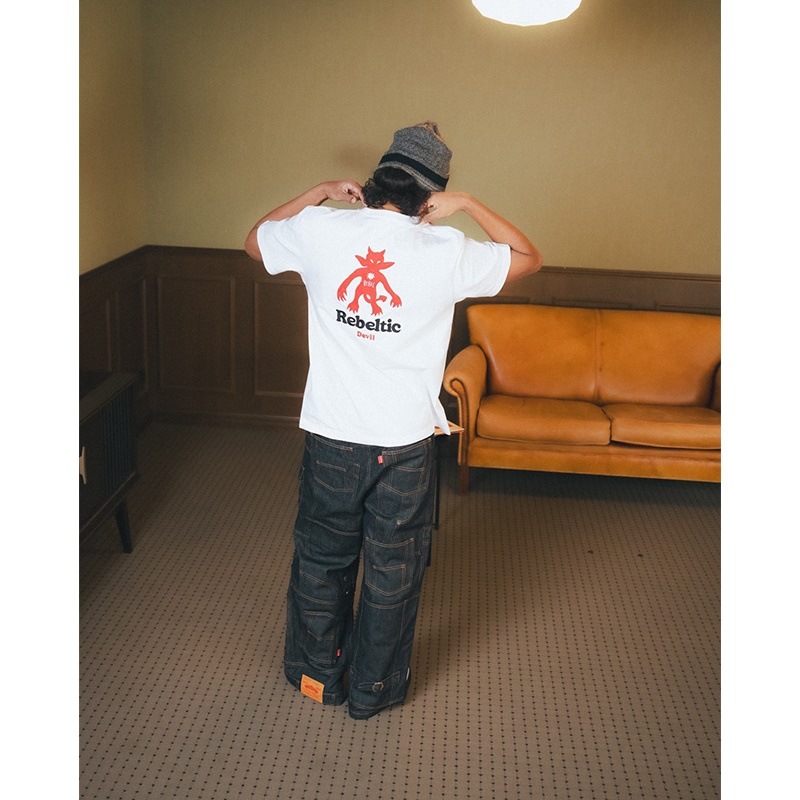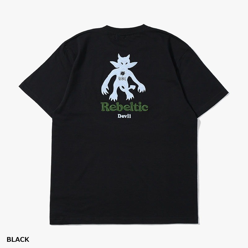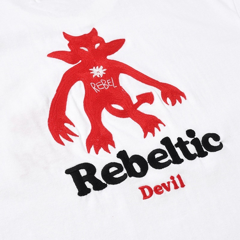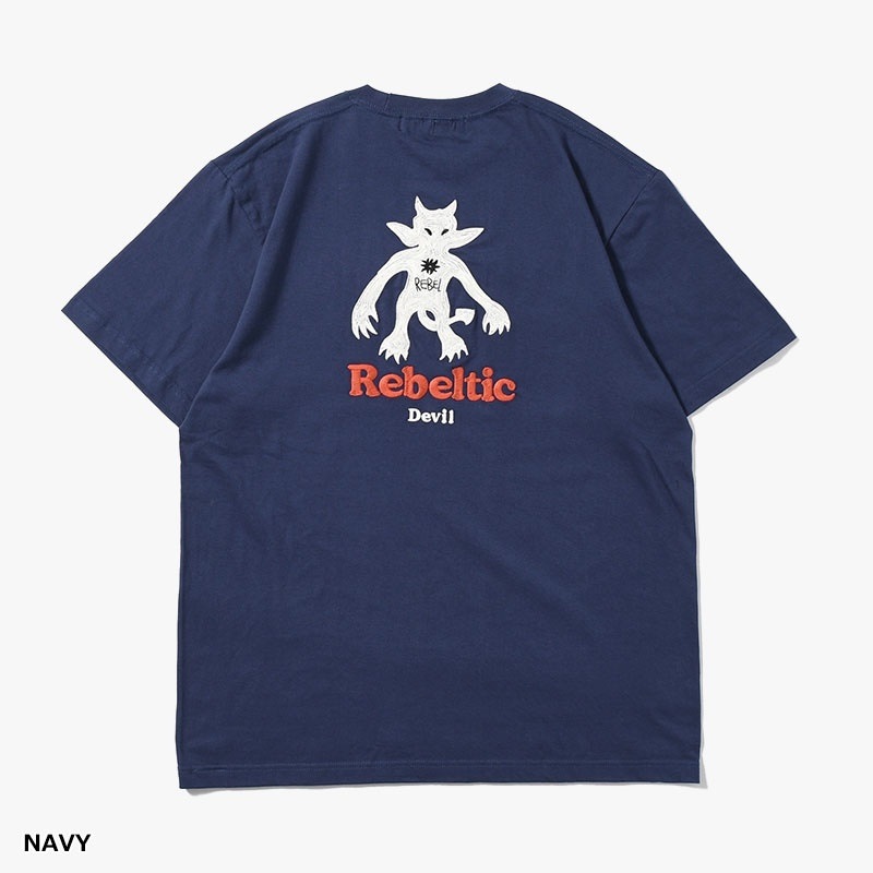 悪魔のグラフィックをチェーンステッチ刺繍で表現する事で、立体感と独特な雰囲気が楽しめるアイテム。