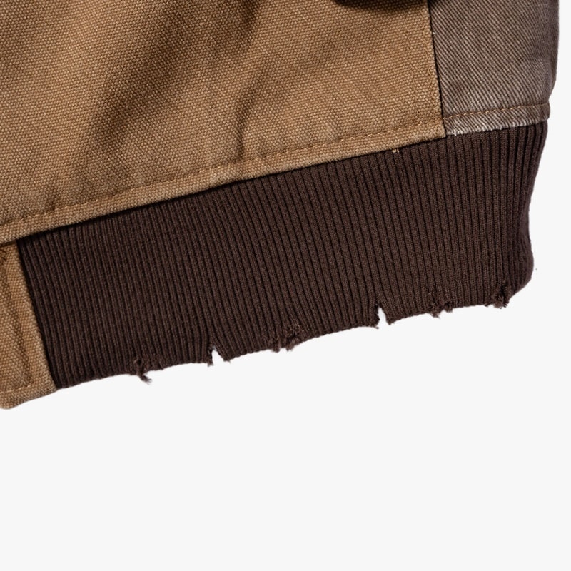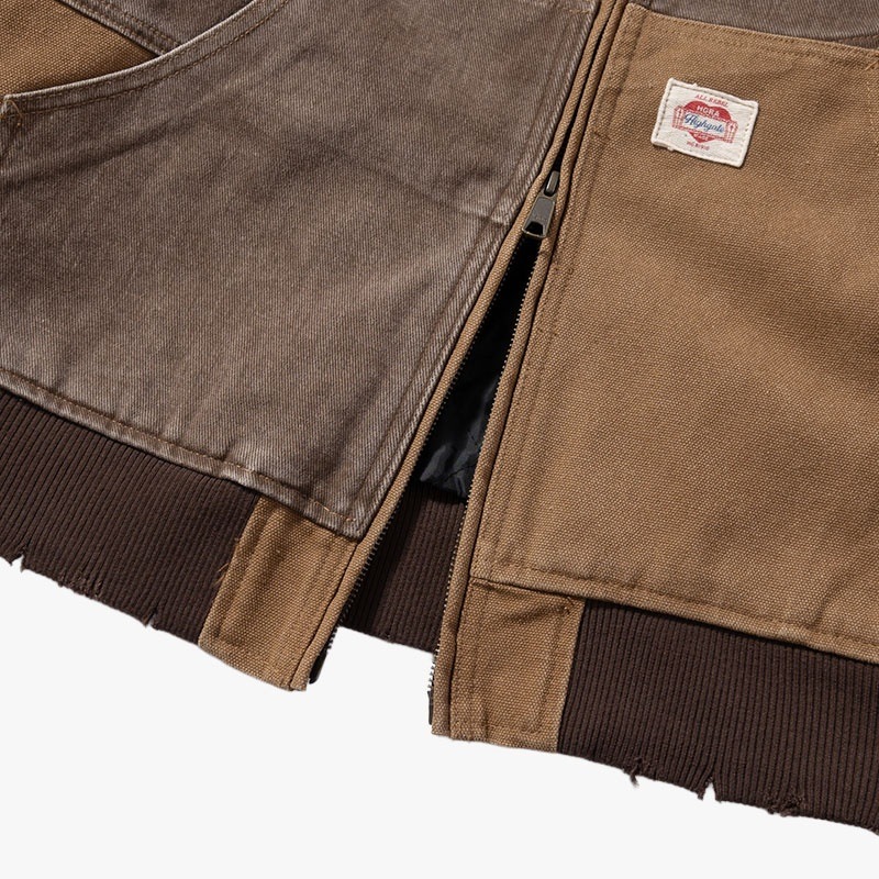 さらに部分的なダメージ加工を施すことで、まるで長年着込んだかのようなヴィンテージの風合いに。