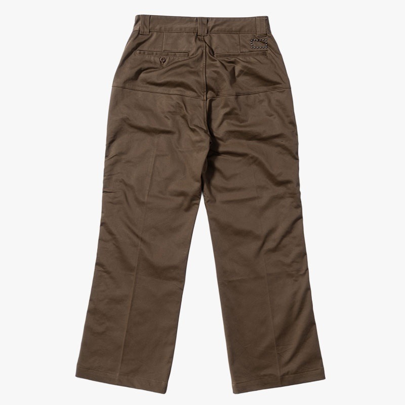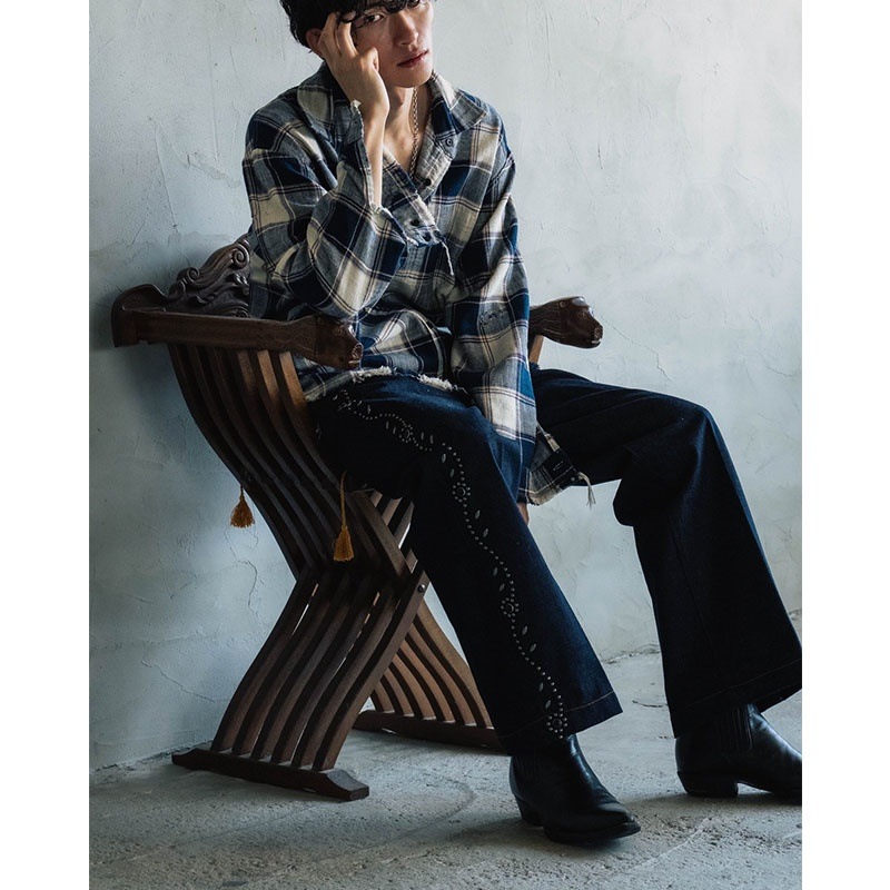 センタークリースを入れることで縦のラインを強調し、ワークやアメカジライクな素材感に洗練された表情をプラスしました。