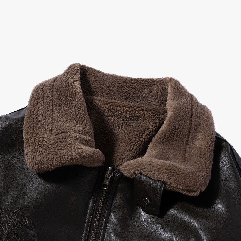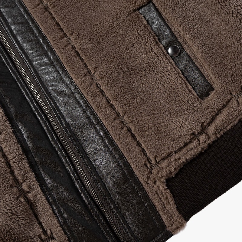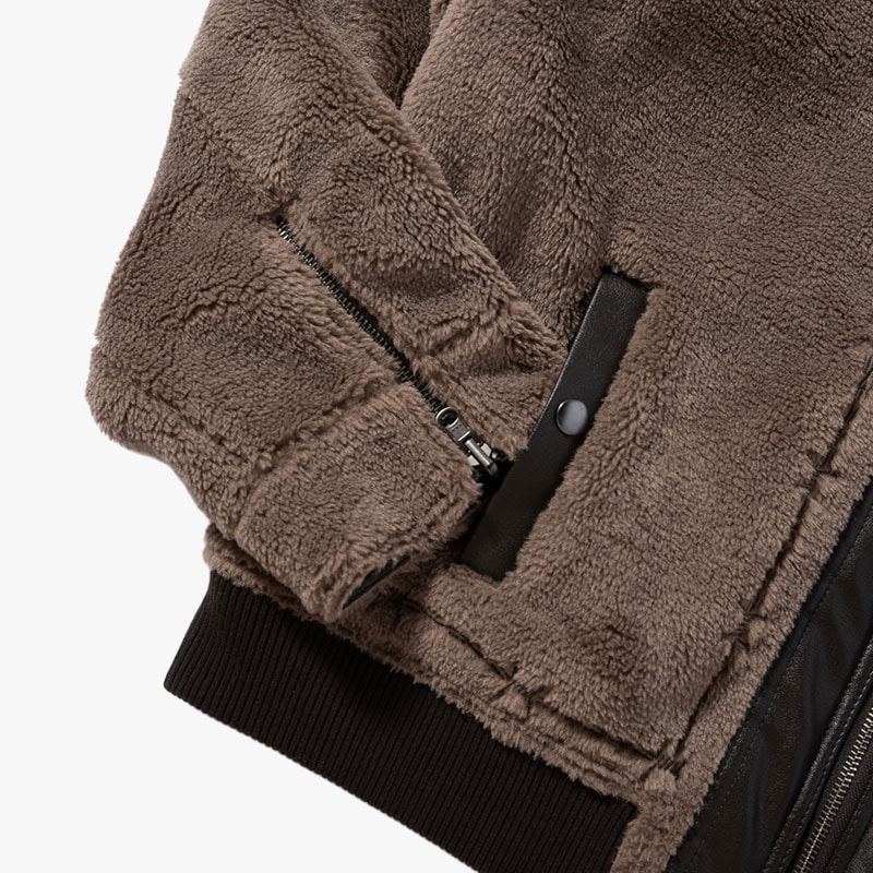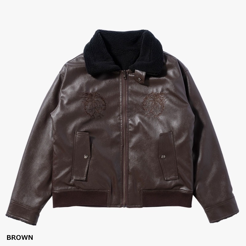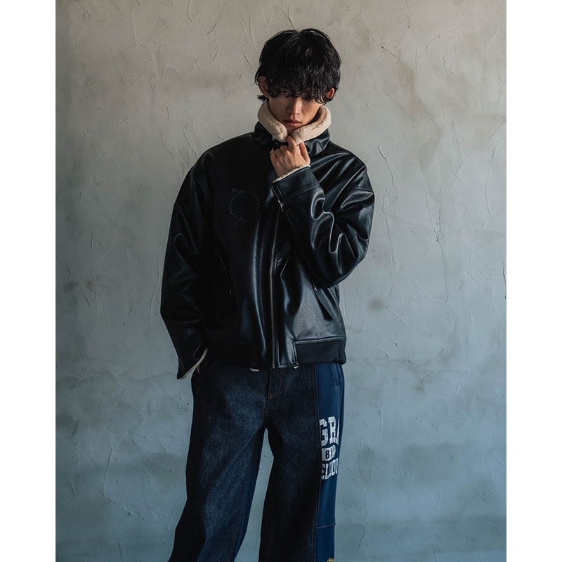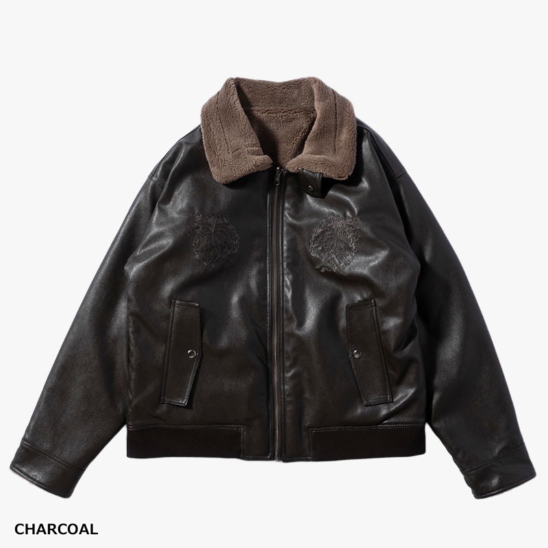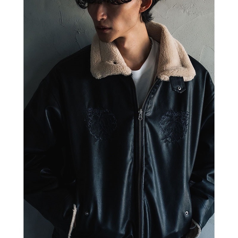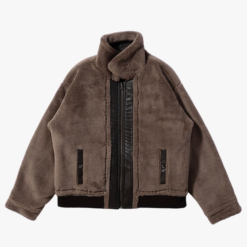 表面はシボ感のあるフェイクレザー、裏面は滑らかなボアを採用したリバーシブル仕様のジャケット。