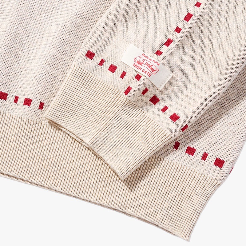 コットン100%の糸を使用し、度詰めのジャガード編みでしっかりと編み立てたニット。